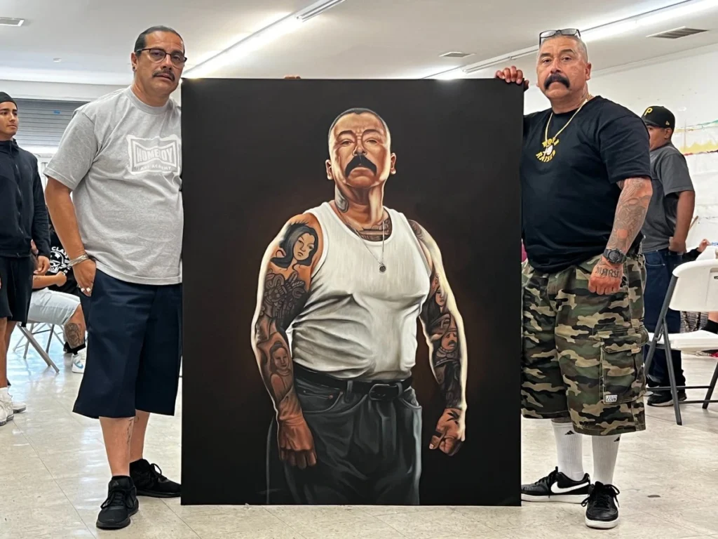 Directo desde Boyle Heights a Tepito. Fabián Debora, ex pandillero convertido en muralista y consejero, trae una serie de retratos que buscan reclamar la humanidad detrás de los tatuajes. A través de códigos QR, los visitantes pueden leer «cartas de amor» que acompañan a las piezas, rompiendo estigmas sobre la violencia y la redención en los márgenes urbanos. Es arte como puente, no como adorno.