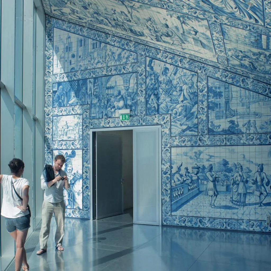 - Estación de San Benito (Oporto): Sus interiores están cubiertos por 20,000 azulejos que ilustran escenas clave de la historia de Portugal.