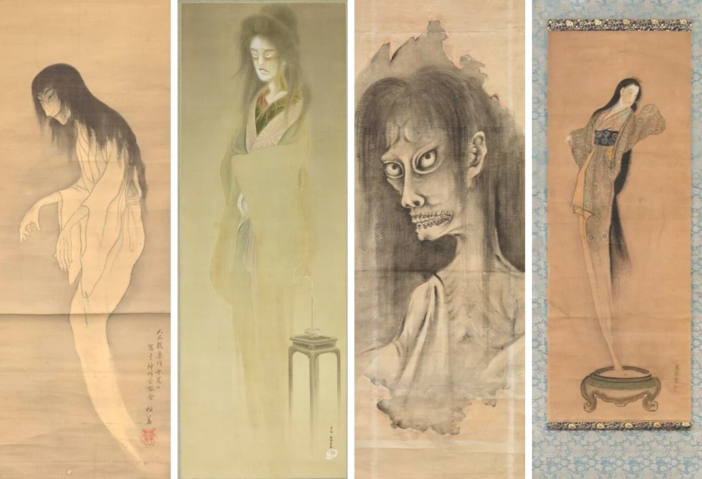 El yokai del folclore japonés lo viste con un shiroumi (kimono funerario blanco), cabello largo y sin piernas. Son la encarnación del onryō (espíritu vengativo) y han sido vitales para el J-Horror moderno.
