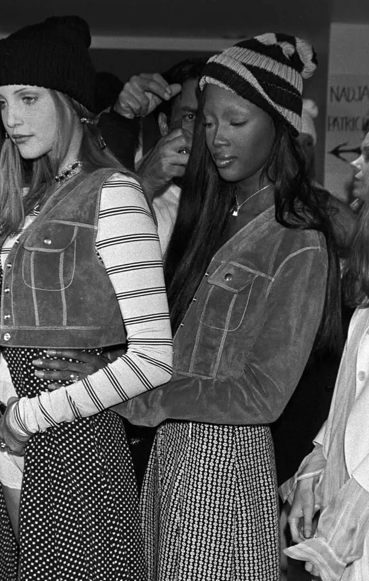 El desfile grunge de Marc Jacobs fue una declaración audaz. Modelos de la talla de Naomi Campbell, Kate Moss y Christy Turlington desfilaron con vestidos «granny» de flores, camisas desgastadas de franela a cuadros atadas a la cintura, gorros slouchy y las entonces subversivas botas Dr. Martens. La visión de Jacobs era clara: difuminar las líneas entre el lujo y la «anti-moda», elevando lo cotidiano a una forma de expresión artística. Fue un golpe para la ortodoxia de la moda de la época, que consideraba el desaliño como algo inaceptable en las pasarelas de alta costura.
