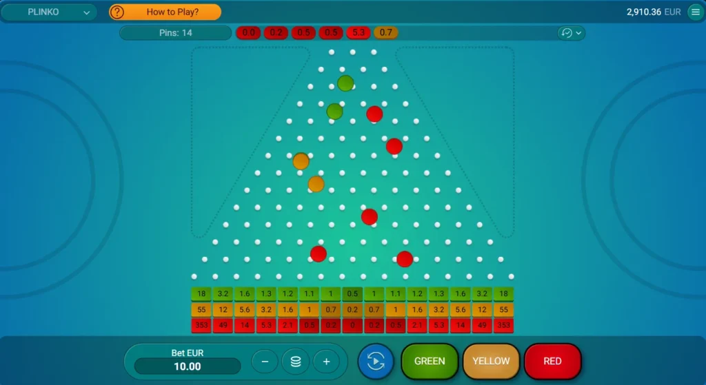 - Haz clic para soltar la ficha: La ficha caerá rebotando y el multiplicador donde termine determinará tu ganancia.